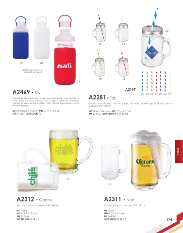 Protege el sabor de las bebidas. CAP. 550 ml. Presentación: caja Práctico vaso de vidrio con asa y tapa de metal. Incluye popote bicolor para su